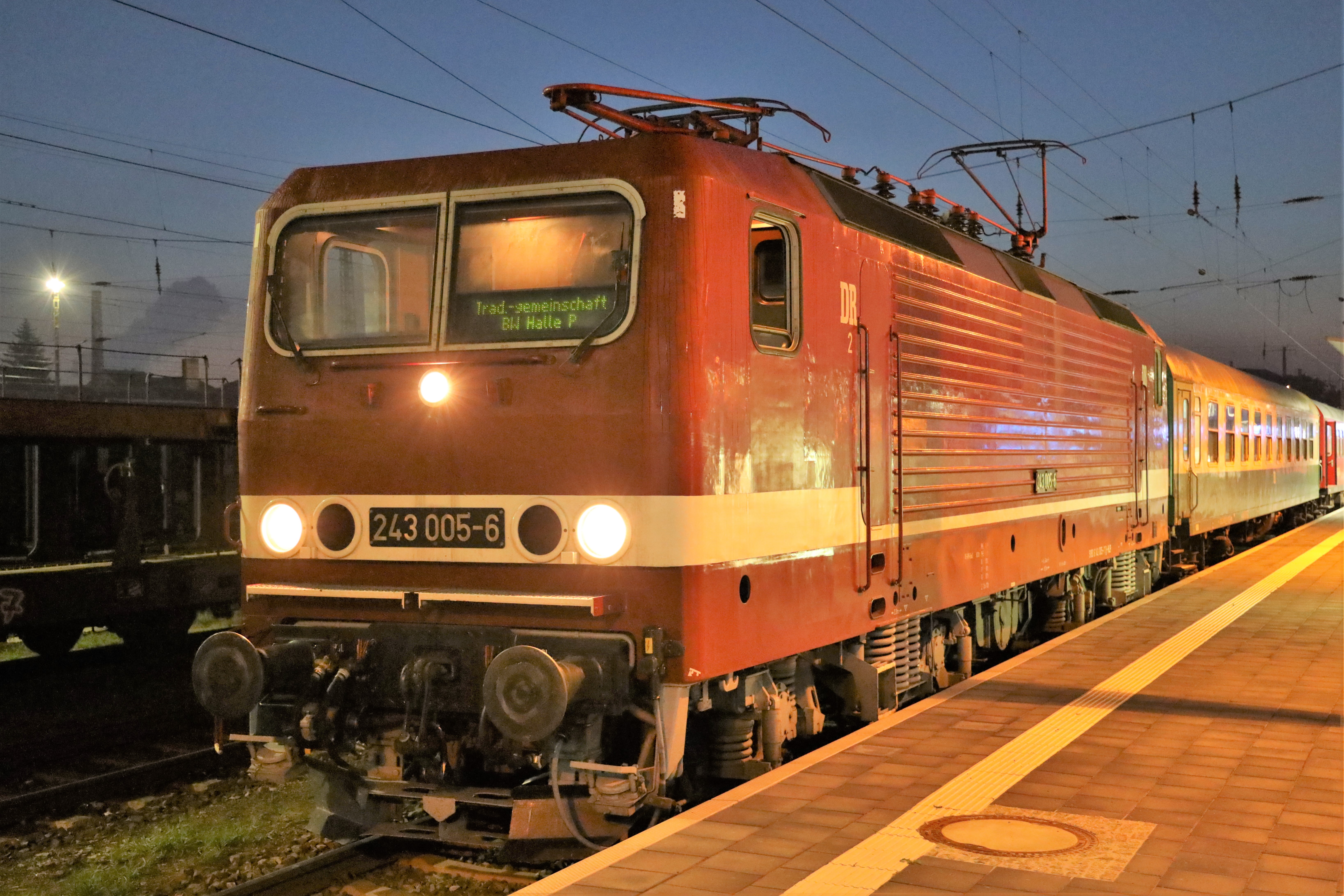 Reisen Sie mit uns in gemütlichen Reisezugwagen der ehemaligen Deutschen Reichsbahn von Leipzig über Halle, Köthen, Magdeburg und Stendal nach Lübeck. Bespannt wird der Sonderzug mit Elektrolokomotive 243 005 - eines der Fahrzeuge, welches durch unsere Traditionsgemeinschaft gepflegt und betriebsfähig gehalten wird.
